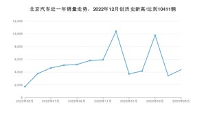 在国内市场上,北京汽车,在2023年5月的销量为4379辆,同比增长156.23%,环比增长28.6%。2022年05月-2023年05月份,北京汽车累计销量为67968辆,较去年同期增长38.28%。