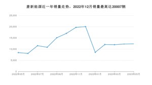 2023年5月,唐新能源销量为12337辆,同比增长46.66%,环比增长0.74%。2022年05月-2023年05月份,唐新能源销量为167627辆,同比增长90.16%。
