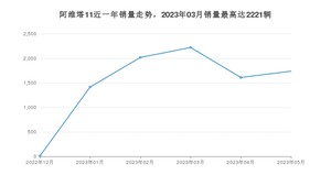 2023年5月,阿维塔11销量为1738辆,环比增长7.95%。2022年05月-2023年05月份,阿维塔11销量为9011辆,
