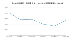 2023年5月,宋Pro新能源销量为13501辆,环比增长60.21%。2022年05月-2023年05月份,宋Pro新能源销量为80840辆,