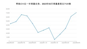 2023年5月,零跑C11销量为7121辆,同比增长63.89%,环比增长15.86%。2022年05月-2023年05月份,零跑C11销量为53208辆,同比增长194.16%。