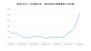 2023年5月,奥迪A7L销量为1591辆,同比增长206.55%,环比增长99.37%。2022年05月-2023年05月份,奥迪A7L销量为6350辆,同比增长331.39%。