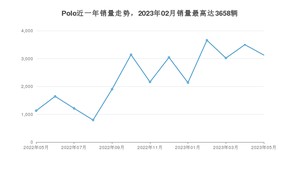 2023年5月,Polo销量为3126辆,同比增长177.13%,环比下降10.66%。2022年05月-2023年05月份,Polo销量为30453辆,同比下降29.14%。