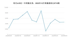 2023年5月,现代ix35销量为4562辆,同比增长89.37%,环比增长0.91%。2022年05月-2023年05月份,现代ix35销量为68150辆,同比下降8.45%。