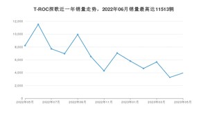 2023年5月,T-ROC探歌销量为3953辆,同比下降51.92%,环比增长21.03%。2022年05月-2023年05月份,T-ROC探歌销量为85551辆,同比增长18.79%。