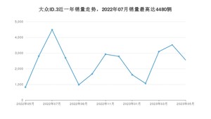 2023年5月,大众ID.3销量为2556辆,同比增长210.95%,环比下降27.45%。2022年05月-2023年05月份,大众ID.3销量为30993辆,同比增长161.5%。