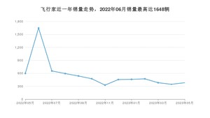 2023年5月,飞行家销量为382辆,同比下降36.12%,环比增长10.4%。2022年05月-2023年05月份,飞行家销量为7330辆,同比下降40.79%。
