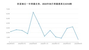 2023年5月,欧蓝德销量为512辆,同比下降76.94%,环比下降84.21%。2022年05月-2023年05月份,欧蓝德销量为31582辆,同比下降42.66%。