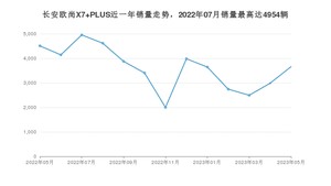 2023年5月,长安欧尚X7 PLUS销量为3660辆,同比下降18.83%,环比增长22.53%。2022年05月-2023年05月份,长安欧尚X7 PLUS销量为47007辆,同比增长83.41%。
