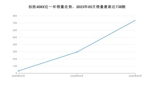 2023年5月,标致408X销量为738辆,环比增长150.17%。2022年05月-2023年05月份,标致408X销量为1065辆,