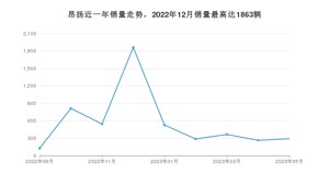 2023年5月,昂扬销量为289辆,环比增长9.89%。2022年05月-2023年05月份,昂扬销量为5070辆,