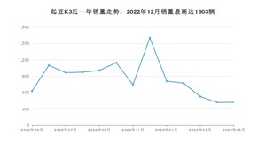 2023年5月,起亚K3销量为422辆,同比下降32.91%,环比增长0.72%。2022年05月-2023年05月份,起亚K3销量为11120辆,同比下降46.42%。