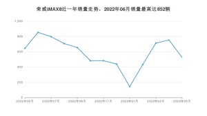 2023年5月,荣威iMAX8销量为525辆,同比下降18.48%,环比下降30.28%。2022年05月-2023年05月份,荣威iMAX8销量为7619辆,同比下降59.24%。