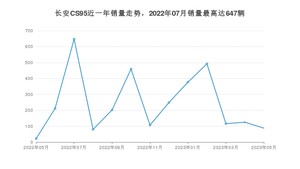 2023年5月,长安CS95销量为88辆,同比增长300%,环比下降29.6%。2022年05月-2023年05月份,长安CS95销量为3176辆,同比增长61.96%。