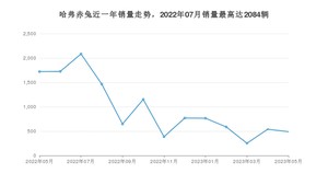 2023年5月,哈弗赤兔销量为489辆,同比下降71.59%,环比下降9.44%。2022年05月-2023年05月份,哈弗赤兔销量为12580辆,同比下降71.6%。