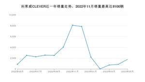 2023年5月,科莱威CLEVER销量为1779辆,同比增长105.9%,环比增长108.07%。2022年05月-2023年05月份,科莱威CLEVER销量为36282辆,同比下降28.58%。