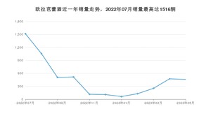 2023年5月,欧拉芭蕾猫销量为459辆,环比下降2.75%。2022年05月-2023年05月份,欧拉芭蕾猫销量为5190辆,