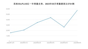 2023年5月,思皓X8 PLUS销量为5761辆,环比增长119.3%。2022年05月-2023年05月份,思皓X8 PLUS销量为19884辆,