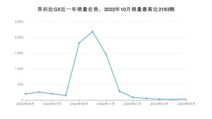 2023年5月,昂科拉GX销量为36辆,同比下降81.63%,环比增长71.43%。2022年05月-2023年05月份,昂科拉GX销量为6772辆,同比增长27.34%。