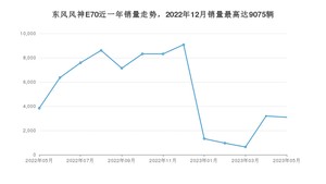 2023年5月,东风风神E70销量为3089辆,同比下降19.54%,环比下降3.2%。2022年05月-2023年05月份,东风风神E70销量为68413辆,同比增长52.34%。