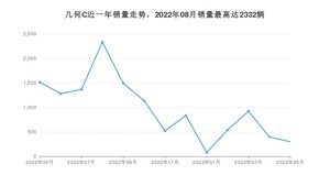 2023年5月,几何C销量为299辆,同比下降80.26%,环比下降24.49%。2022年05月-2023年05月份,几何C销量为12710辆,同比下降2.25%。