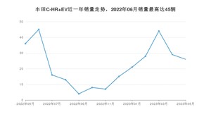 2023年5月,丰田C-HR EV销量为26辆,同比下降27.78%,环比下降10.34%。2022年05月-2023年05月份,丰田C-HR EV销量为292辆,同比下降74.94%。
