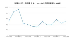 2023年5月,奔腾T55销量为513辆,同比下降3.57%,环比增长18.2%。2022年05月-2023年05月份,奔腾T55销量为6549辆,同比下降24.45%。