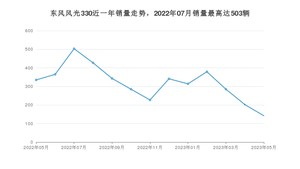 2023年5月,东风风光330销量为142辆,同比下降57.61%,环比下降29.7%。2022年05月-2023年05月份,东风风光330销量为4148辆,同比下降55.72%。