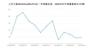 2023年5月,上汽大通MAXUS D90 Pro销量为28辆,同比下降33.33%,环比增长12%。2022年05月-2023年05月份,上汽大通MAXUS D90 Pro销量为868辆,同比下降30.17%。