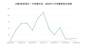 2023年5月,名爵6新能源销量为9辆,同比增长200%,环比增长28.57%。2022年05月-2023年05月份,名爵6新能源销量为467辆,同比下降45.76%。