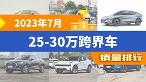 2023年7月的乘用车销量数据已经出炉,据众车网汽车行业数据监测显示,7月国内乘用车市场销量达到160.36万辆,同比下降9.57%,环比下降7.8%。每月各个细分市场的销量排行榜,也成为了大家所关注的话题,今天众车网为大家带来了,2023年7月25-30万跨界车的销量排行榜单,有哪些车型能跻身销量榜呢?下面我们直接看数据。