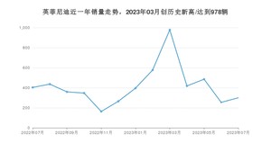 在国内市场上,英菲尼迪,在2023年7月的销量为300辆,同比下降25.56%,环比增长18.11%。2022年07月-2023年07月份,英菲尼迪累计销量为5381辆,较去年同期下降40.34%。