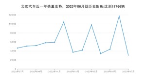 在国内市场上,北京汽车,在2023年7月的销量为2977辆,同比下降35.91%,环比下降74.7%。2022年07月-2023年07月份,北京汽车累计销量为77234辆,较去年同期增长48.8%。