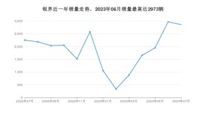 2023年7月,锐界销量为2861辆,同比增长26.93%,环比下降3.77%。2022年07月-2023年07月份,锐界销量为24350辆,同比下降14.58%。