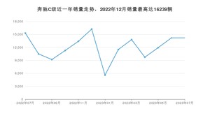 2023年7月,奔驰C级销量为14198辆,同比下降7.25%,环比下降0.01%。2022年07月-2023年07月份,奔驰C级销量为156817辆,同比增长22.93%。