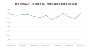 2023年7月,赛那SIENNA销量为7094辆,同比增长4.02%,环比增长21.26%。2022年07月-2023年07月份,赛那SIENNA销量为84289辆,同比增长101.66%。
