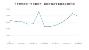 2023年7月,卡罗拉锐放销量为11663辆,同比增长18.93%,环比下降9.96%。2022年07月-2023年07月份,卡罗拉锐放销量为124482辆,同比增长273.1%。