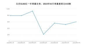 2023年7月,北京BJ60销量为603辆,环比增长16.63%。2022年07月-2023年07月份,北京BJ60销量为4411辆,