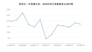 2023年7月,威然销量为1702辆,同比下降13.3%,环比下降7.1%。2022年07月-2023年07月份,威然销量为21445辆,同比增长32.74%。