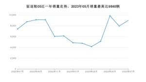 2023年7月,驱逐舰05销量为8996辆,同比增长21.5%,环比增长13.26%。2022年07月-2023年07月份,驱逐舰05销量为92144辆,同比增长302.85%。