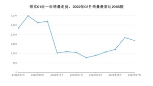 2023年7月,领克01销量为1683辆,同比下降28.2%,环比下降8.43%。2022年07月-2023年07月份,领克01销量为21299辆,同比下降27.34%。