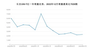2023年7月,长安UNI-T销量为2328辆,同比下降60.92%,环比增长4.91%。2022年07月-2023年07月份,长安UNI-T销量为48849辆,同比下降28.93%。