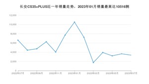 2023年7月,长安CS35 PLUS销量为3358辆,同比下降49.14%,环比下降8%。2022年07月-2023年07月份,长安CS35 PLUS销量为67420辆,同比增长27.2%。