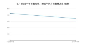 2023年7月,BJ 212销量为345辆,环比下降19.01%。2022年07月-2023年07月份,BJ 212销量为771辆,