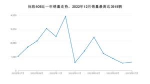 2023年7月,标致408销量为618辆,同比下降40.29%,环比增长13.81%。2022年07月-2023年07月份,标致408销量为22003辆,同比增长50.56%。