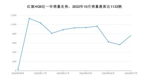 2023年7月,红旗HQ9销量为765辆,环比增长36.36%。2022年07月-2023年07月份,红旗HQ9销量为8659辆,