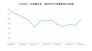 2023年7月,飞行家销量为490辆,同比下降25.08%,环比增长33.51%。2022年07月-2023年07月份,飞行家销量为5941辆,同比下降52.7%。