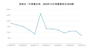 2023年7月,智跑销量为707辆,同比下降60.48%,环比下降36.25%。2022年07月-2023年07月份,智跑销量为17300辆,同比下降41.41%。