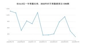 2023年7月,ID.6 X销量为159辆,同比下降88.53%,环比下降64.51%。2022年07月-2023年07月份,ID.6 X销量为9610辆,同比下降27.21%。