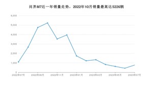 2023年7月,问界M7销量为769辆,同比下降30.09%,环比增长78.01%。2022年07月-2023年07月份,问界M7销量为28174辆,同比增长2%。